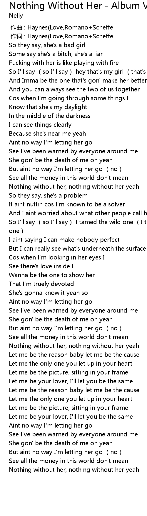 | 歌曲 | Nothing Without Her - Album Version (Explicit) |