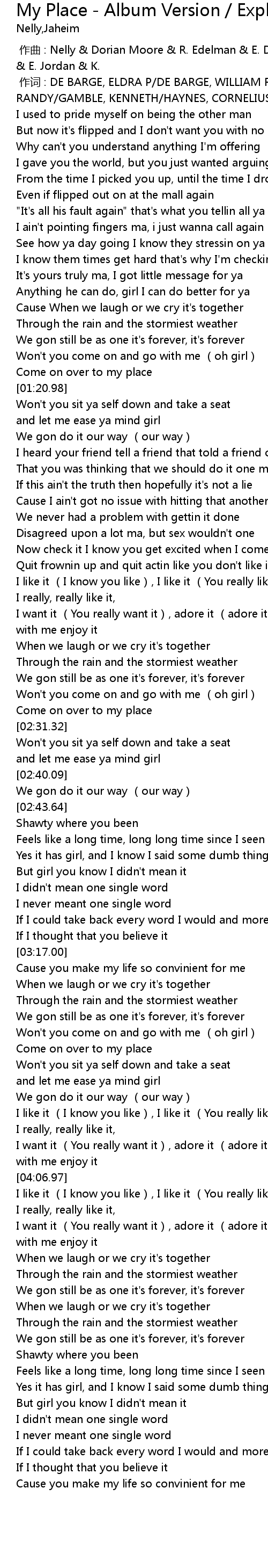 | [00:00.00] | zuò qǔ : Nelly Dorian Moore R. Edelman E. DeBarge W. DeBarge E. Jordan K. |