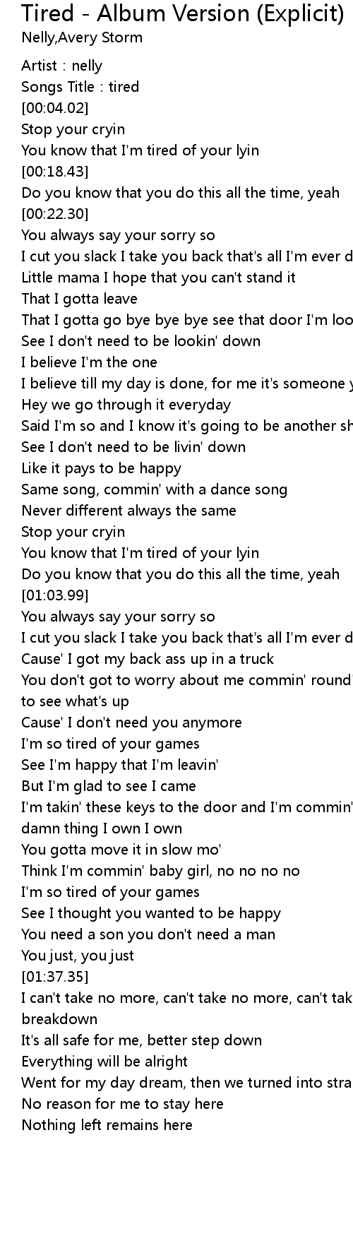 | [00:44.99] | Said I'm so and I know it's going to be another shitty day |