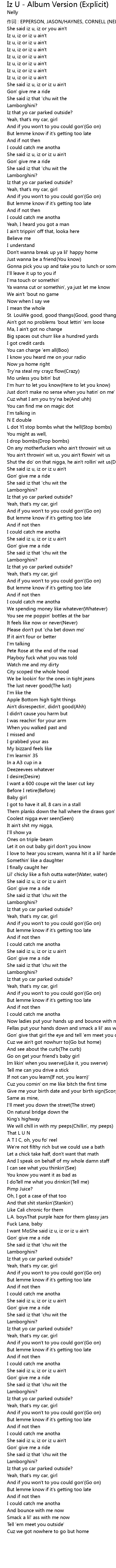 | 歌曲 | Iz U - Album Version (Explicit) |