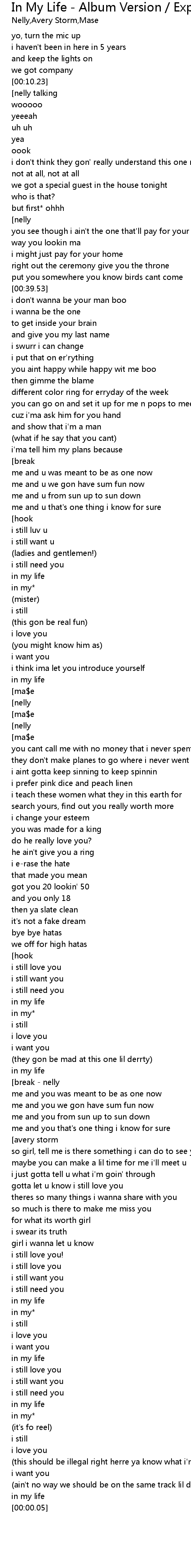 | [01:31.80][nelly] | i heard your hear to change the game again |