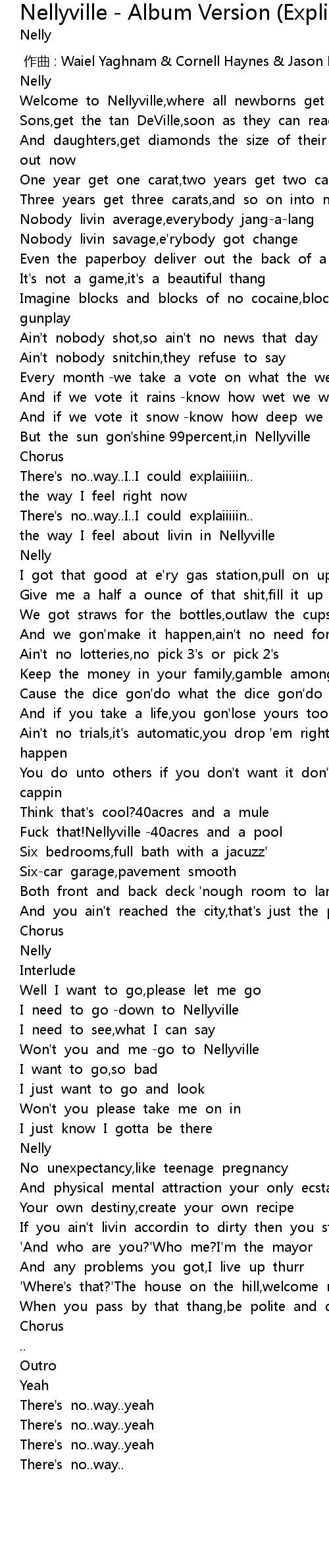 | [01:11.112] | the way I feel about livin in Nellyville |