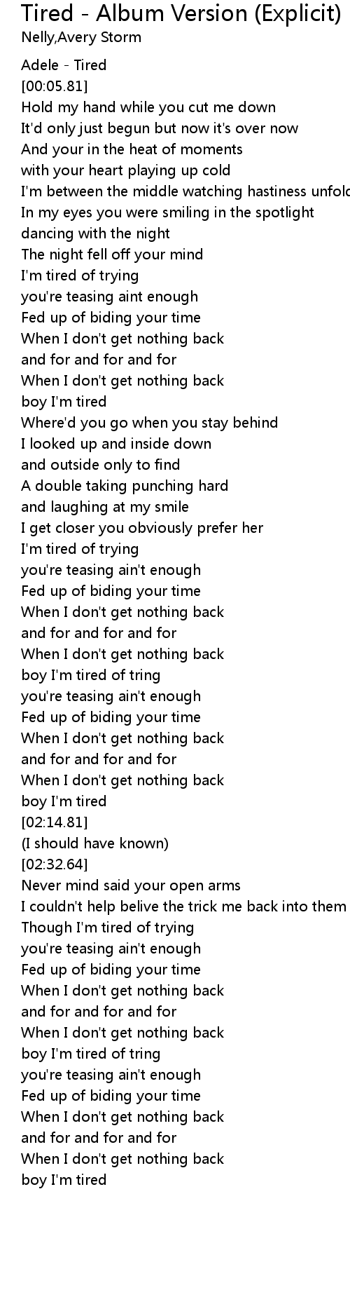 | [00:03.11] | Adele - Tired |