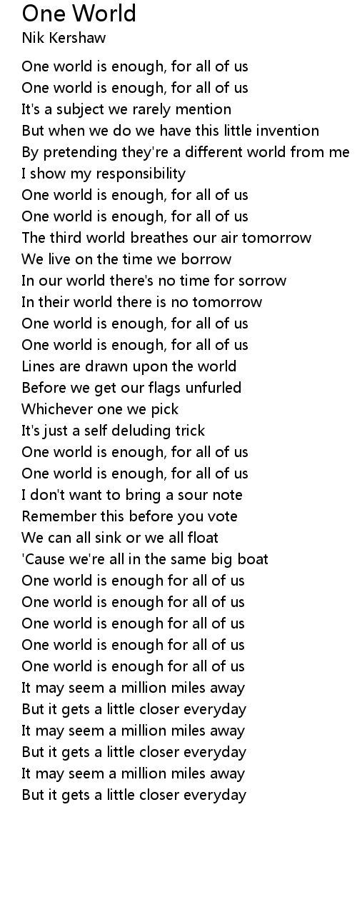 One world is enough for all of us |