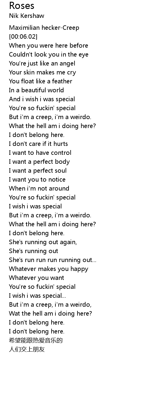 | [01:22.08] | But i'm a creep, i'm a weirdo. |