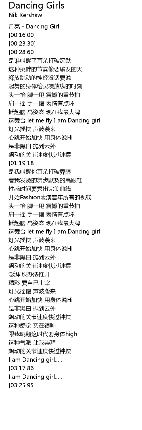 | [03:21.68] | I am Dancing girl |