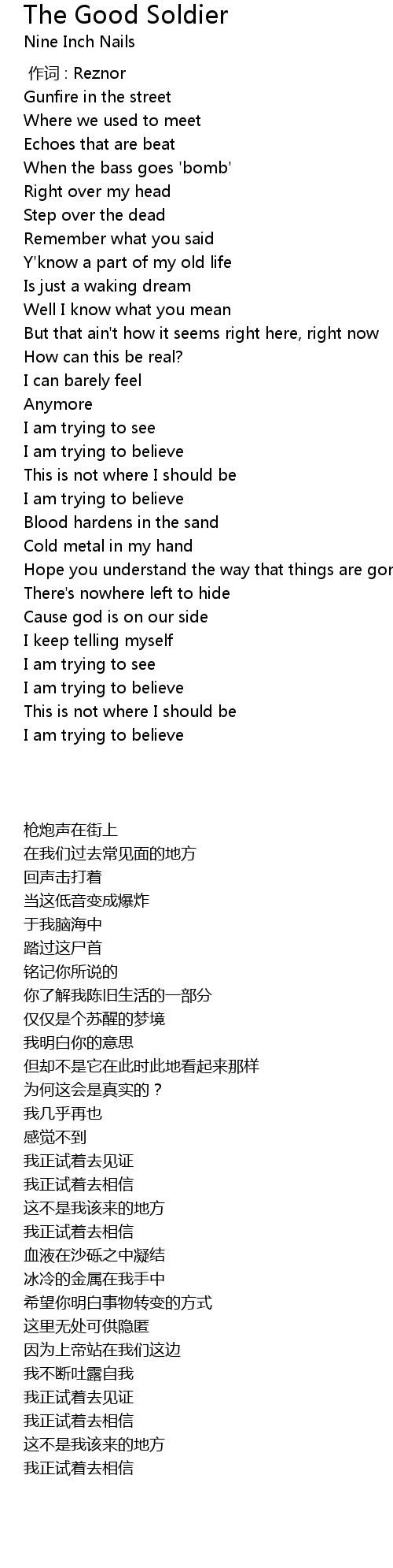 | 歌曲 | The Good Soldier |