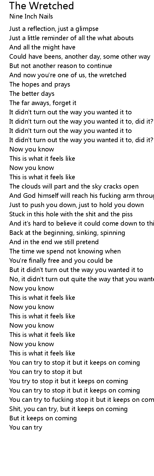And now you're one of us, the wretched |