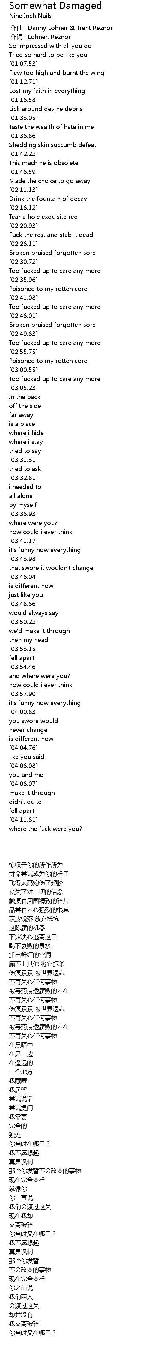 | [00:01.00] | 作词 : Lohner, Reznor |