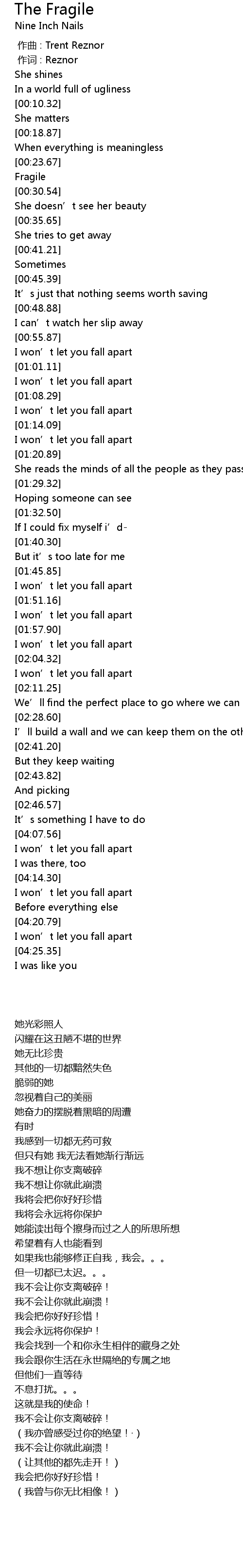 | [00:00.00] | zuo qu : Trent Reznor |
