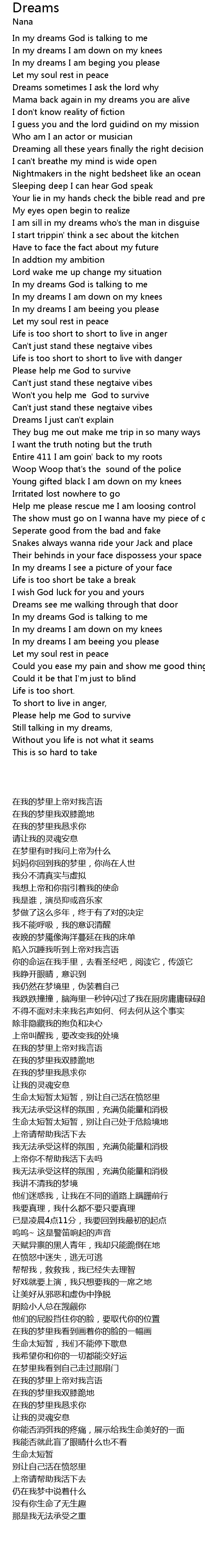 In my dreams God is talking to me |