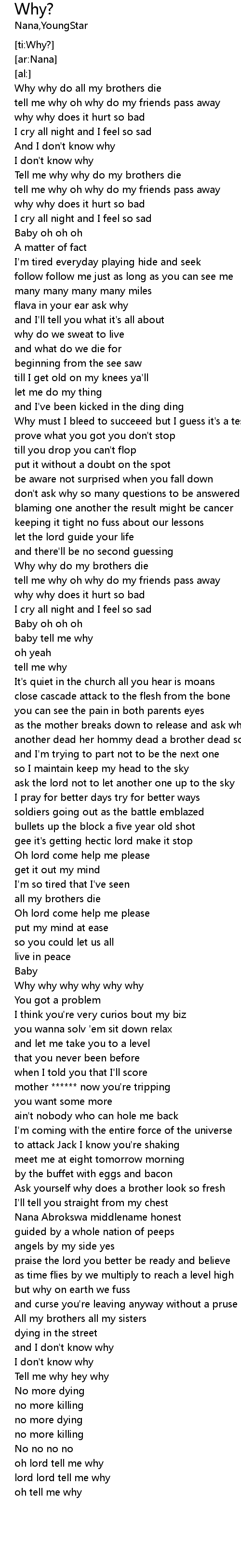 | [00:45.71] | tell me why oh why do my friends pass away |