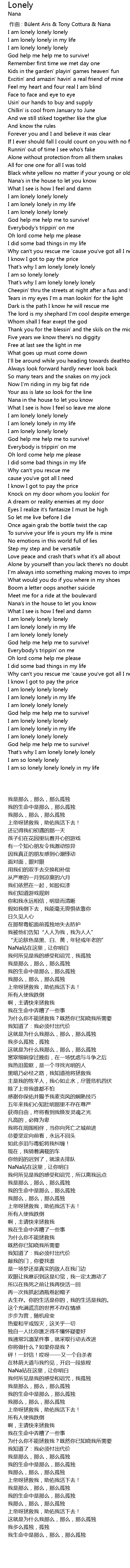 | [04:33.340] | 我是那么,那么,那么孤独 |