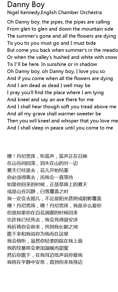 Oh Danny boy, oh Danny boy, I love you so |
