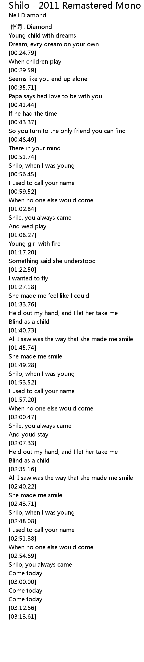| 歌曲 | Shilo - 2011 Remastered Mono |