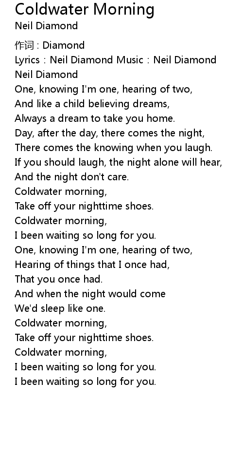 | Lyrics: Neil Diamond Music: Neil Diamond | |