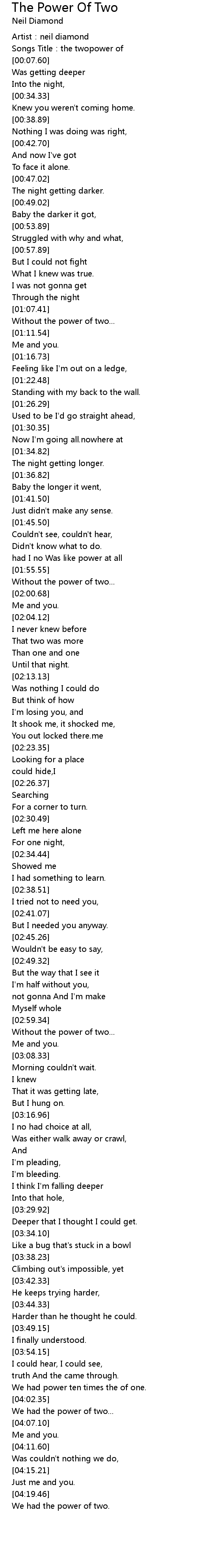 | [00:03.12] | Songs Title:the twopower of |