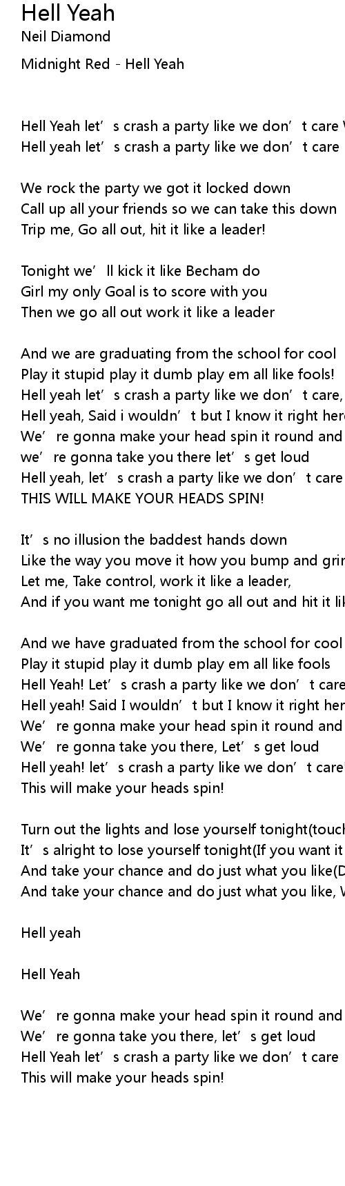 | Hell Yeah let' s crash a party like we don' t care Whooa | |