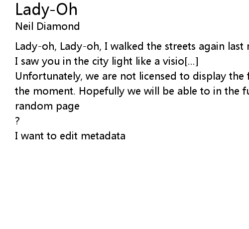 | Lady-oh, Lady-oh, I walked the streets again last night. | |