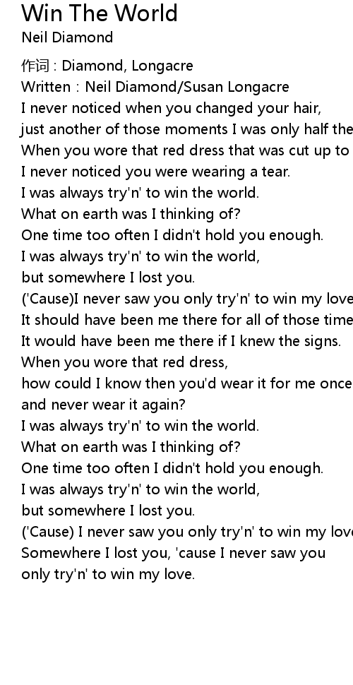 | I was always try'n' to win the world, | |