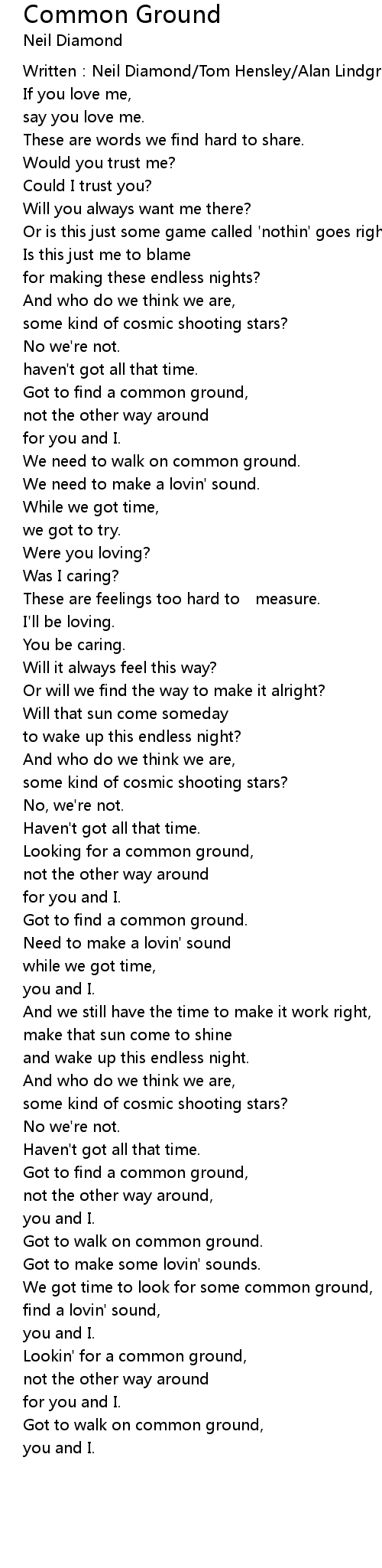 | Lookin' for a common ground, | |