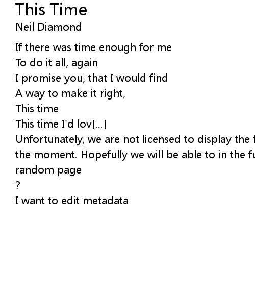 | Unfortunately, we are not licensed to display the full lyrics for this song at the moment. Hopefully we will be able to in the future. Until then, how about a | |
