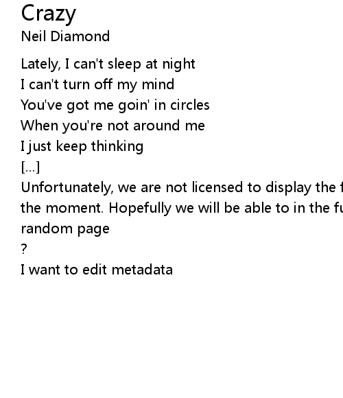 | Unfortunately, we are not licensed to display the full lyrics for this song at the moment. Hopefully we will be able to in the future. Until then, how about a | |
