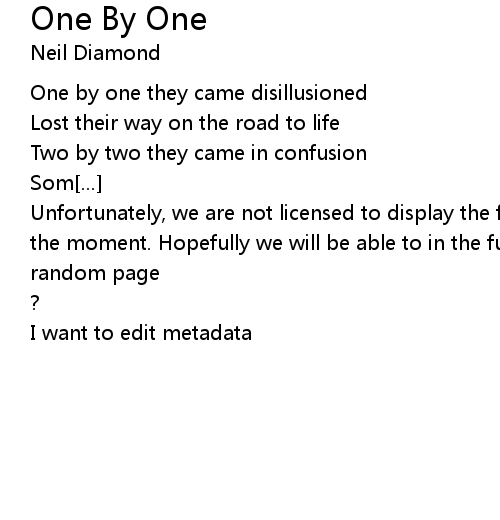 | Unfortunately, we are not licensed to display the full lyrics for this song at the moment. Hopefully we will be able to in the future. Until then, how about a | |