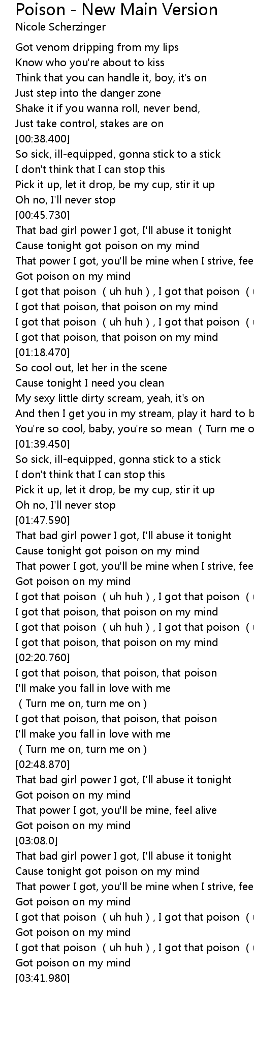 | [02:11.450] | I got that poison uh huh, I got that poison uh huh |