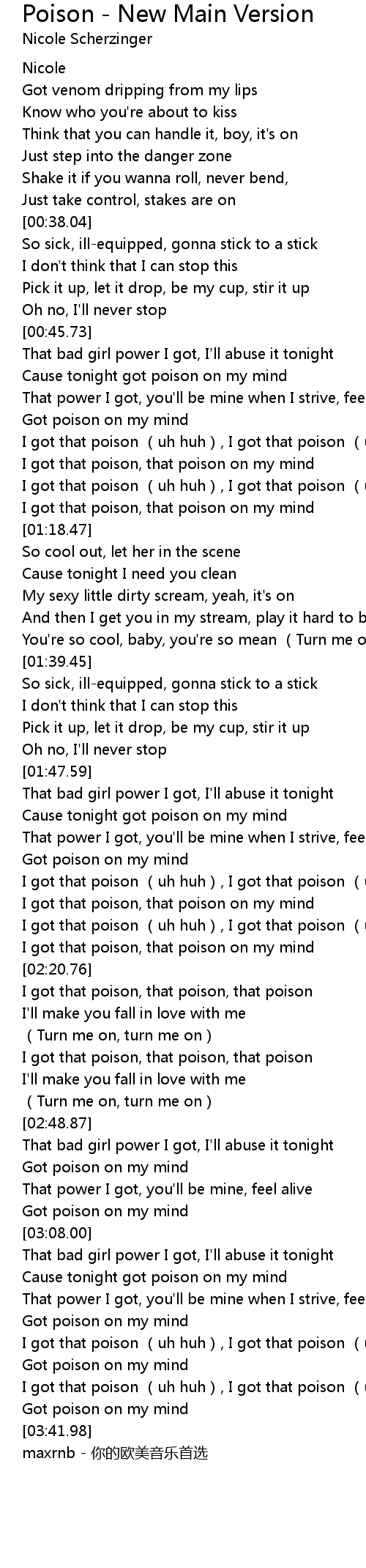 | [03:39.52] | Got poison on my mind |