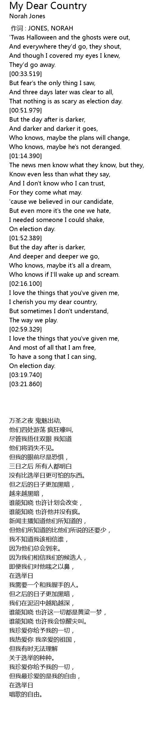 | [00:00.00] | 作词 : JONES, NORAH |