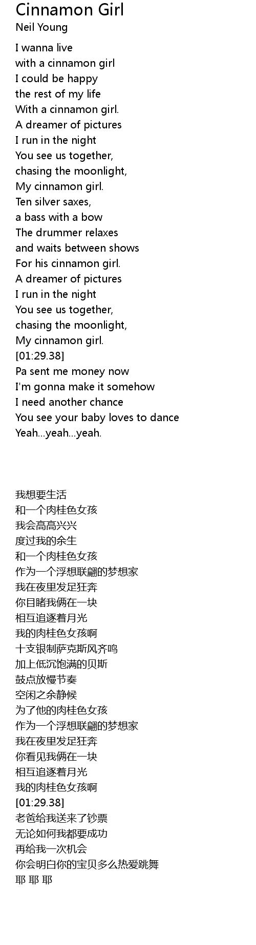 | [01:13.97] | 为了他的肉桂色女孩 |