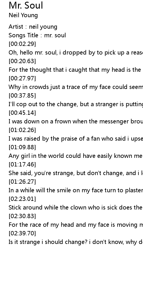 | [00:01.10] | Songs Title: mr. soul |