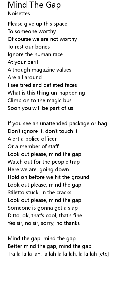Mind the gap, mind the gap |