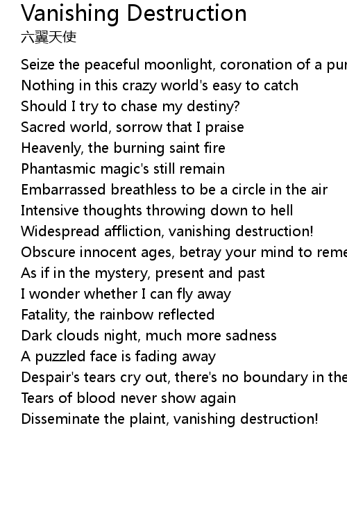| Disseminate the plaint, vanishing destruction! |