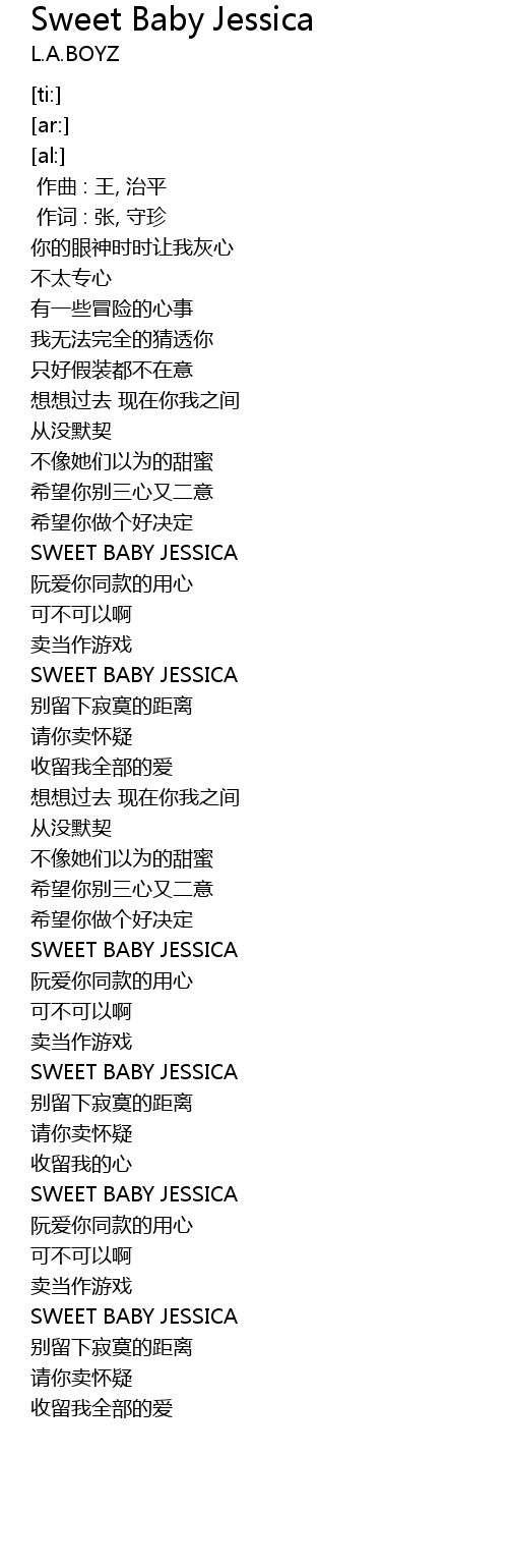 | [02:53.91] | SWEET BABY JESSICA |