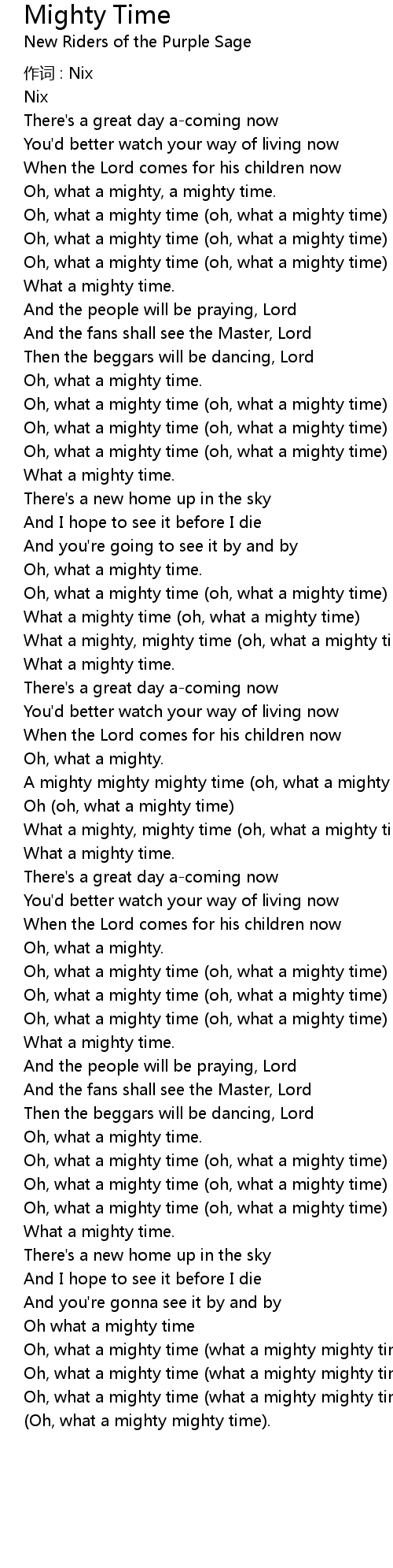 | Oh oh, what a mighty time | |