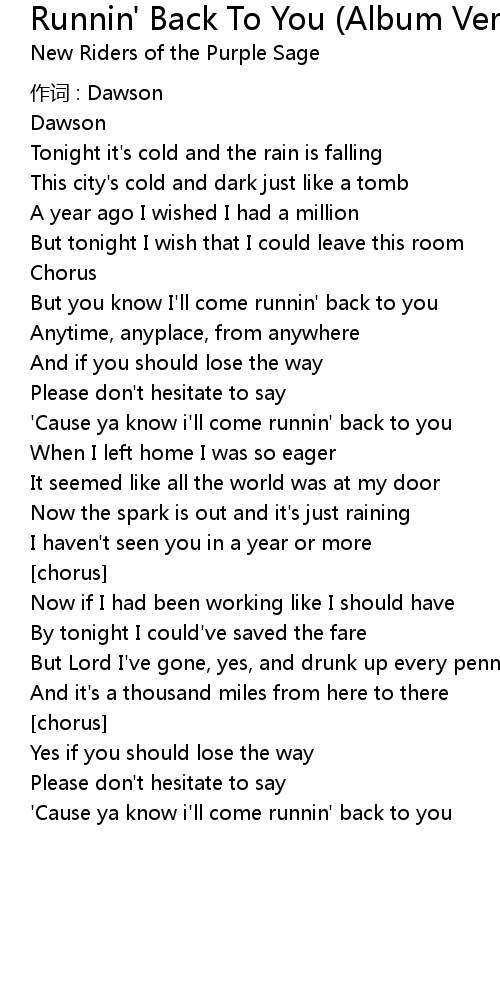 | 歌曲 | Runnin' Back To You (Album Version) |