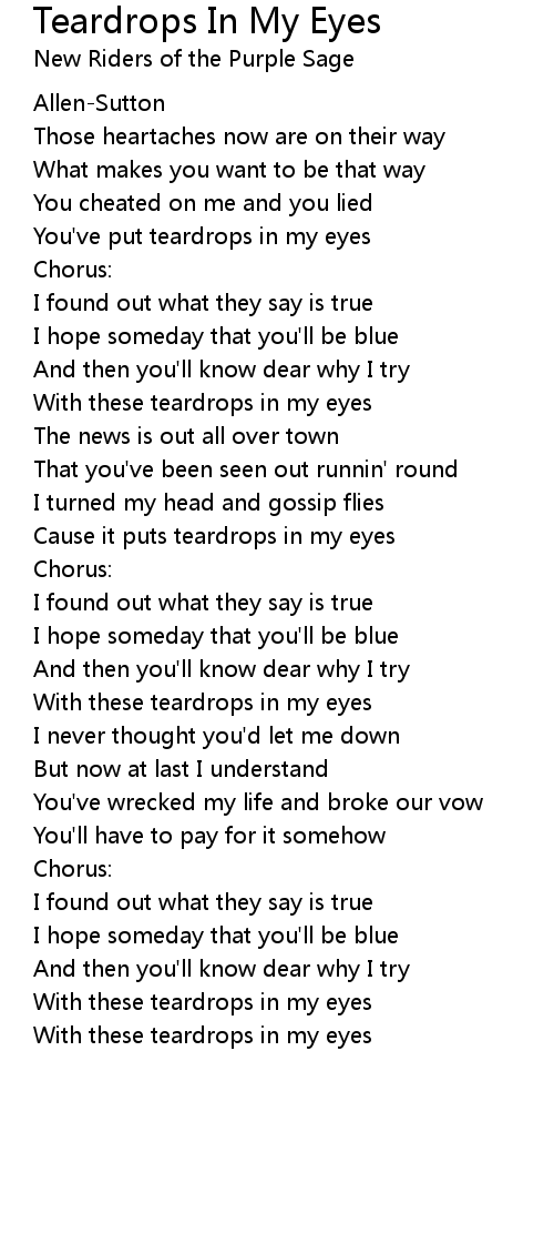 With these teardrops in my eyes |
