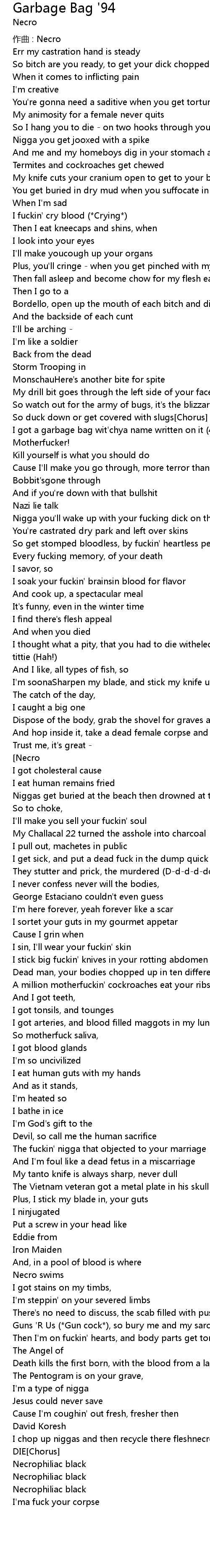 | I got a garbage bag wit'chya name written on it (4X)[Necro] | |