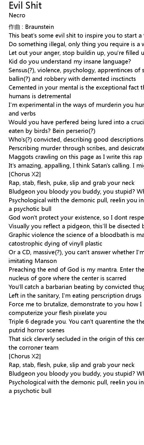 | Rap, stab, flesh, puke, slip and grab your neck | |