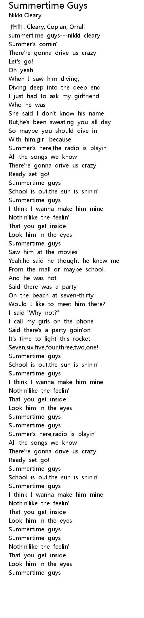 | [00:00.967] | summertime guys---nikki cleary |