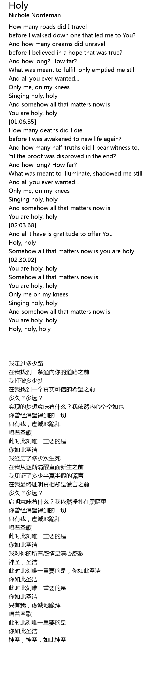 Somehow all that matters now is you are holy |