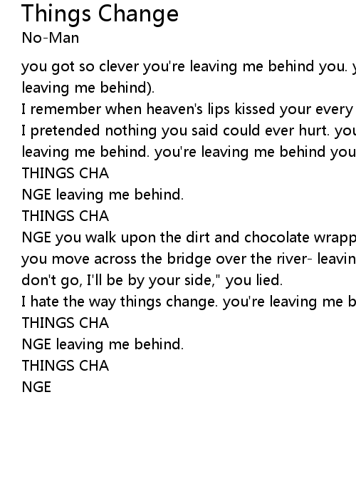 I hate the way things change. you're leaving me behind you - |
