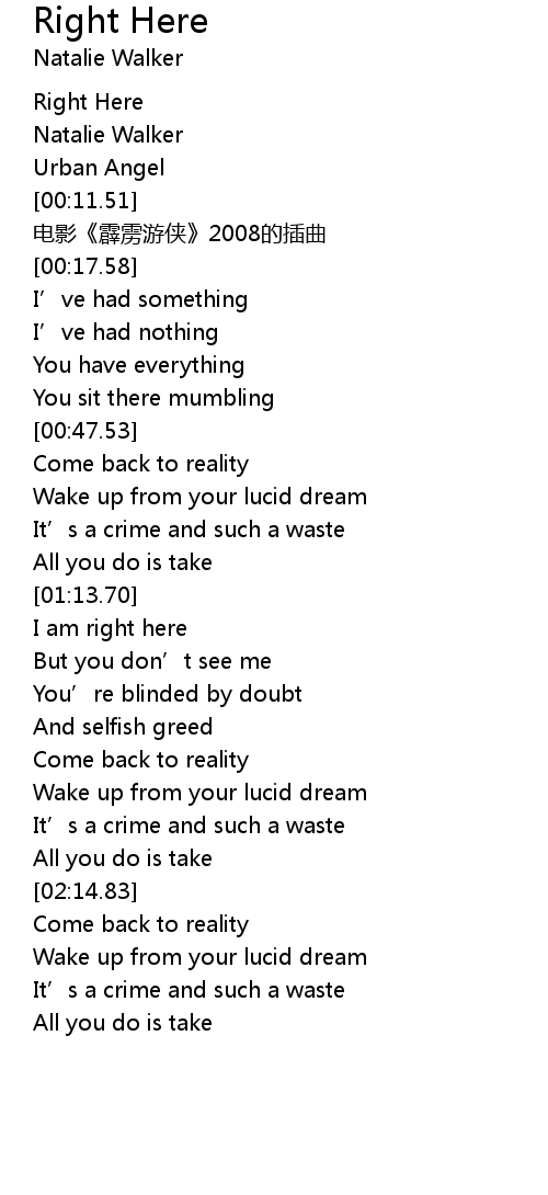 | [00:49.29] | Come back to reality |