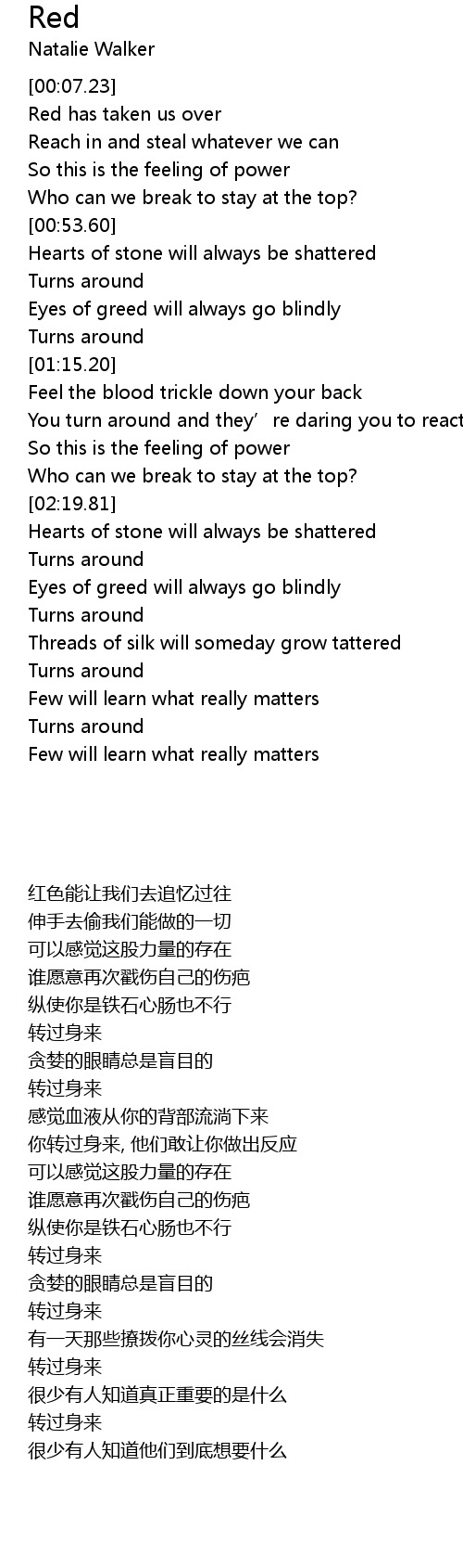 | [00:10.94] | 红色能让我们去追忆过往 |