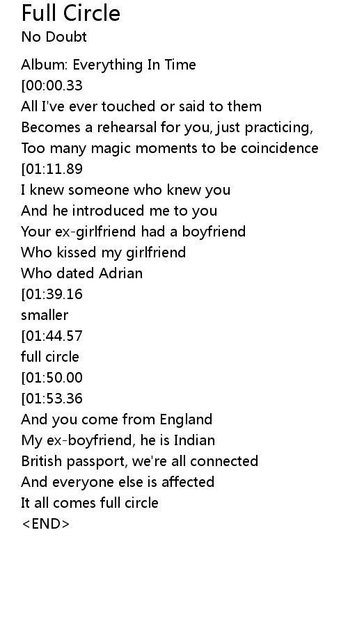 [01:00.64][01:44.57][02:28.63][02:50.57] And everything comes back full circle, full circle