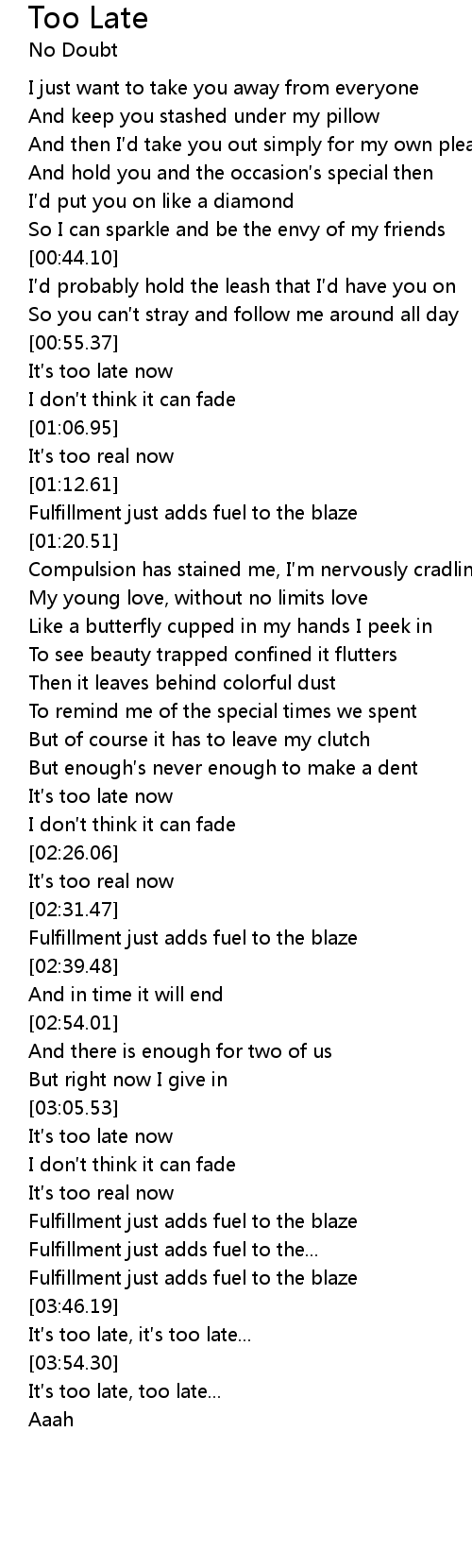 | [00:56.37] | It s too late now |