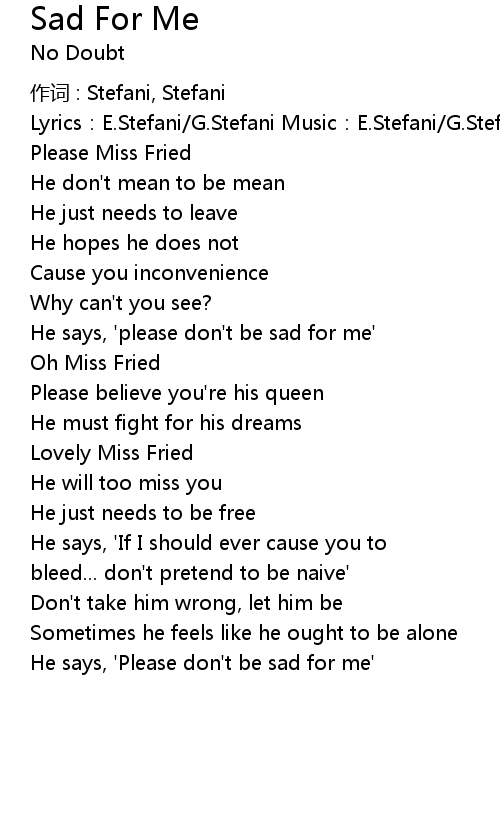 | Lyrics:E.Stefani/G.Stefani Music:E.Stefani/G.Stefani | |