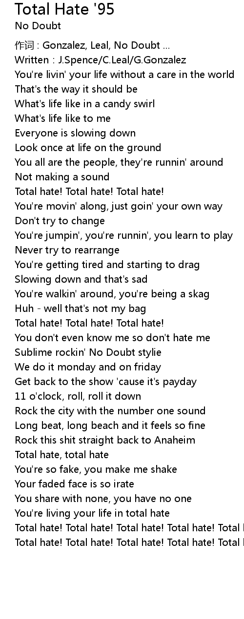 | Total hate! Total hate! Total hate! Total hate! Total hate! |